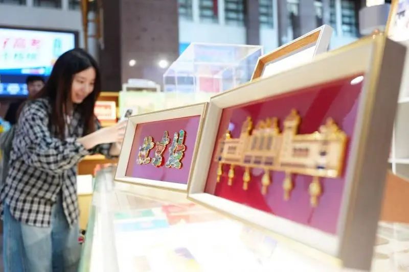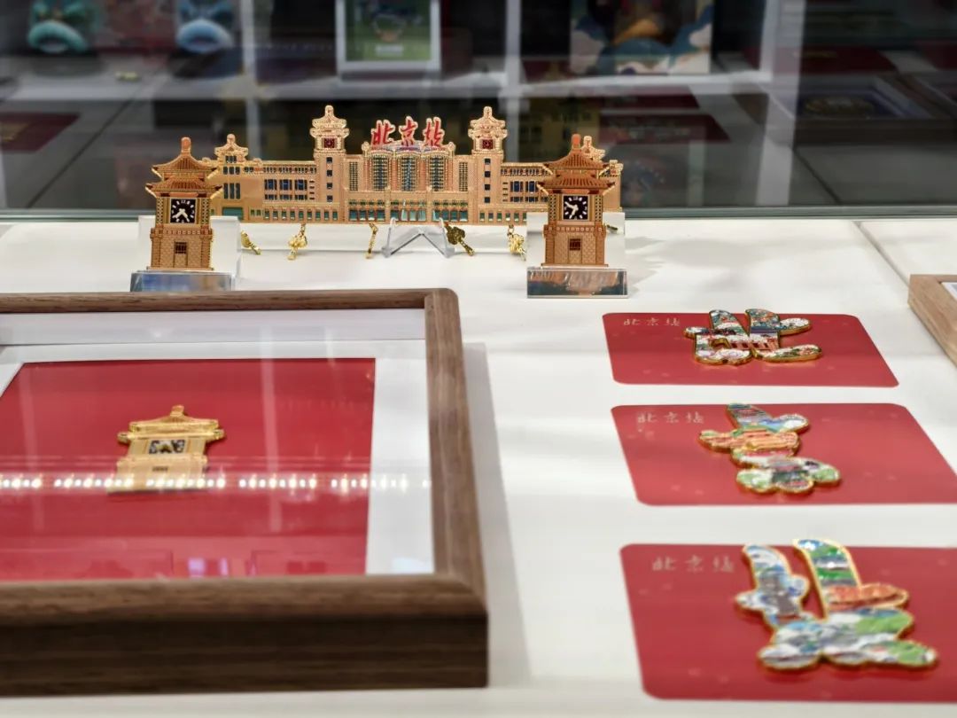 本次上新的文化产品,以“铁路+京味文化”为设计核心,将车站标志性建筑浓缩于方寸之间。快闪展旁的互动角,旅客只需驻足参与趣味满满的有奖问答,答对即可获得定制文创产品作为纪念,将这份独特的文化记忆带回家。售卖第一天,最受旅客欢迎的,是站内云勾纹、宝相花灯吉祥元素、车站钟楼为原型的立体冰箱贴和金属书签,它们成为旅客争相收藏的“移动文化名片”。